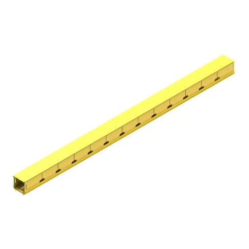 This 100 mm duct is similar to standard duct except that it is slotted to allow optical fibre cord feed off at 150mm intervals and external vision of the duct’s contents. It carries up to 400 pigtails or patch cords (3mm dia) to a depth of 50mm, without excess stress on them, during removal processes. The duct comes complete with a lid and is made of tough Noryl plastic with a non halogen, fire retardant. It connects to other 100mm duct sections and various bends adapters etc., using either: a standard joiner (Part No: TC1279‐27, Telstra Part No: S 353/514) or a slotless joiner (Part No: TC1279‐248A). It is recommended that each outlet slot be fitted with an outlet radius guide (Part No: TC1279‐ 212KIT – x 10 in a pack), that will guarantee the outgoing radius for every housed optical fibre cord. These are available separately.