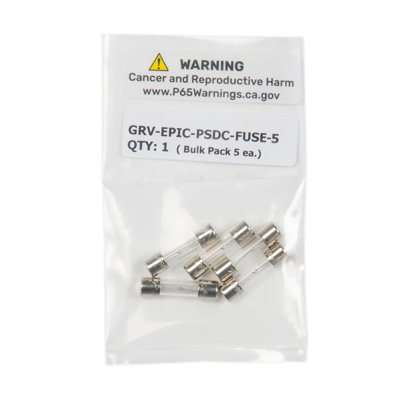 GRV-EPIC-PSDC-FUSE-5 is a package of five replacement fuses for the GRV-EPIC-PSDC power converter. These are 4-amp, 250 V slow fuses.