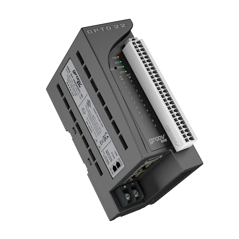 groov RIO® revolutionizes remote I/O by offering over 200,000 unique, software-configurable I/O combinations in a single, compact, PoE-powered industrial package with web-based configuration, commissioning, flow logic software, and the ability to run simple control programs written in IEC 61131-3-compliant languages, plus support for multiple OT and IT protocols. groov RIO offers the flexibility to fit into IIoT projects (especially those that require I/O data acquisition or communications) or traditional control systems, or act as a stand-alone control unit.