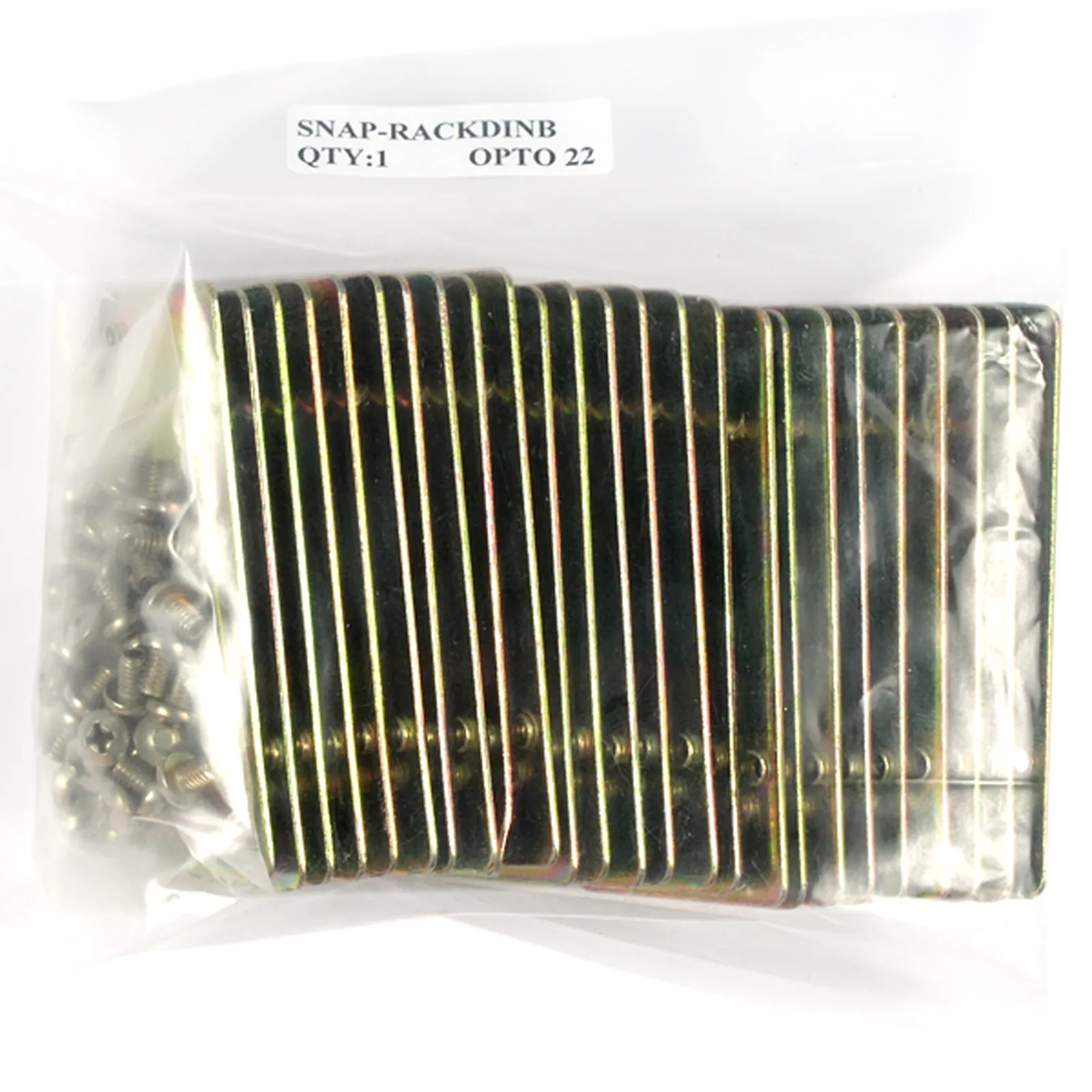The SNAP-RACKDINB provides a pack of 25 adapter clips for mounting SNAP racks on 35mm DIN rails. Each SNAP rack requires 2 to 4 clips (depending on rack length) for secure mounting.