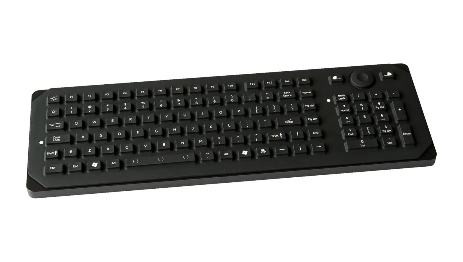 Keyboard with mouse button, backlite (W), industrial, desktop, IP65, 105 rubber keys, Belgian azerty layout, USB interface