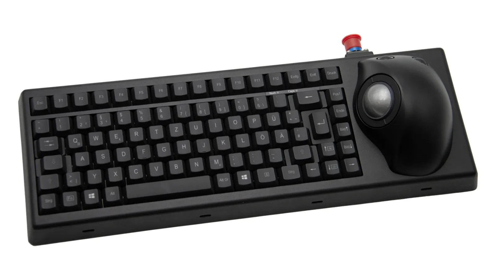 Rugged keyboard, 87-keys, full travel, ergonomic Trackball, panel mount, illuminated, German qwertz layout, USB, MIL-STD-810G/461G