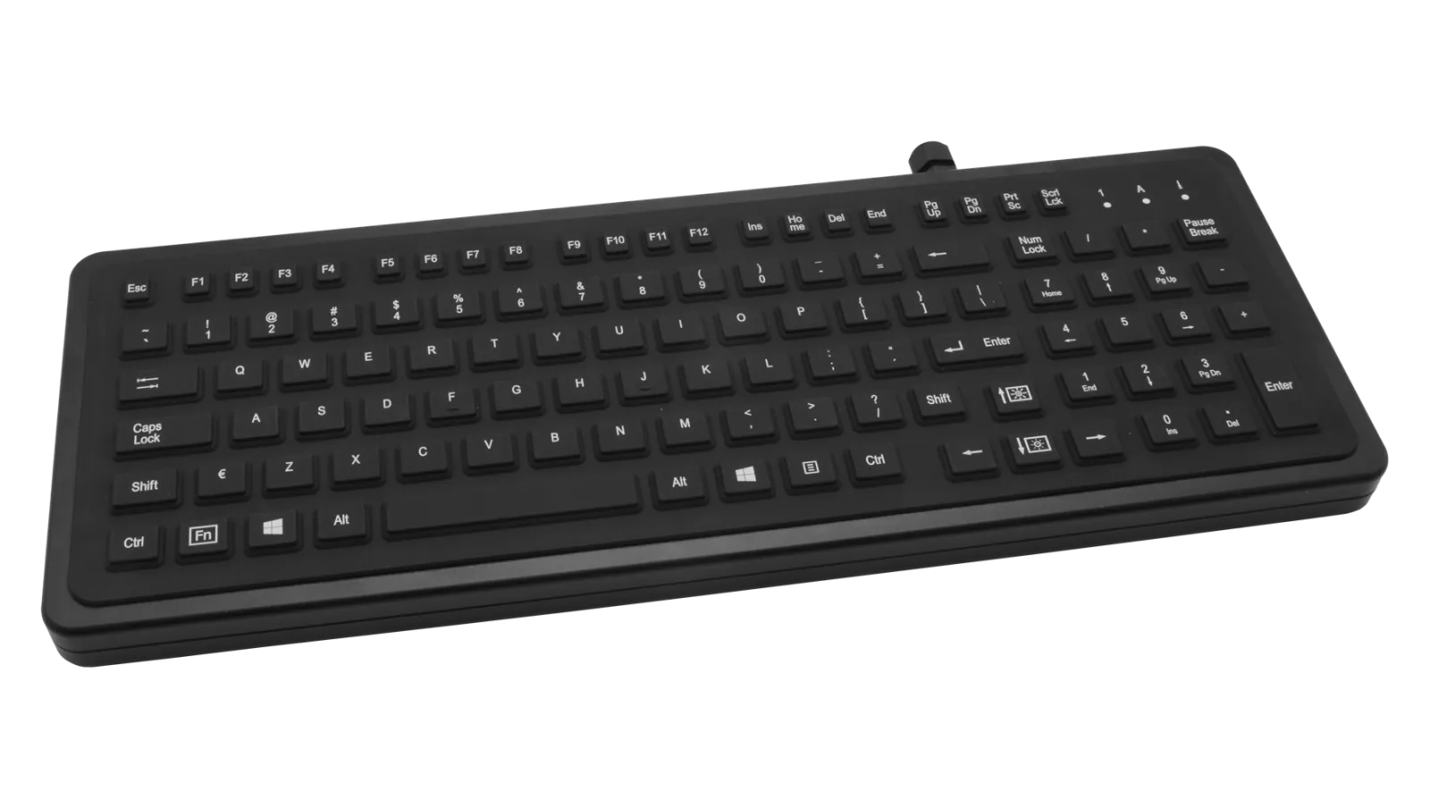 Keyboard industrial, desk top, IP65 closed, 106 silicon rubber keys, US English qwerty, USB interface.