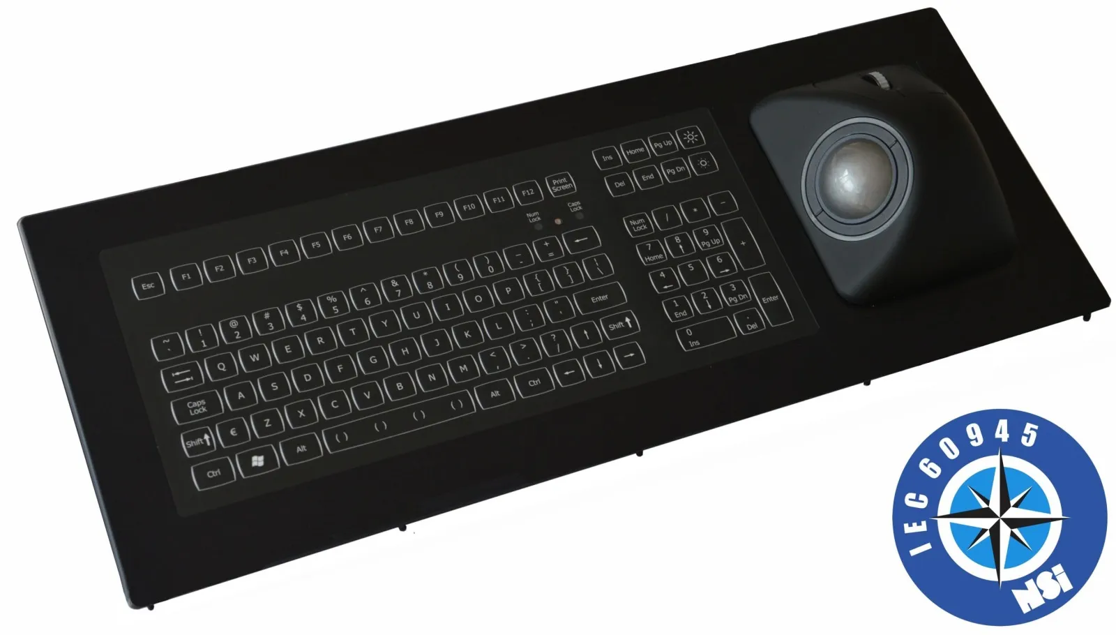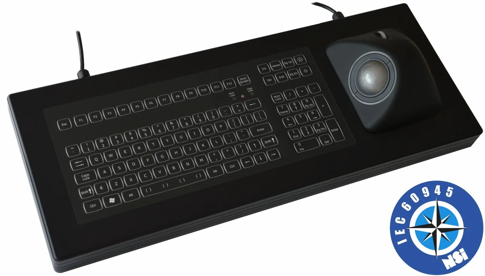 Keyboard+trackball, panel mount, backlit, USB