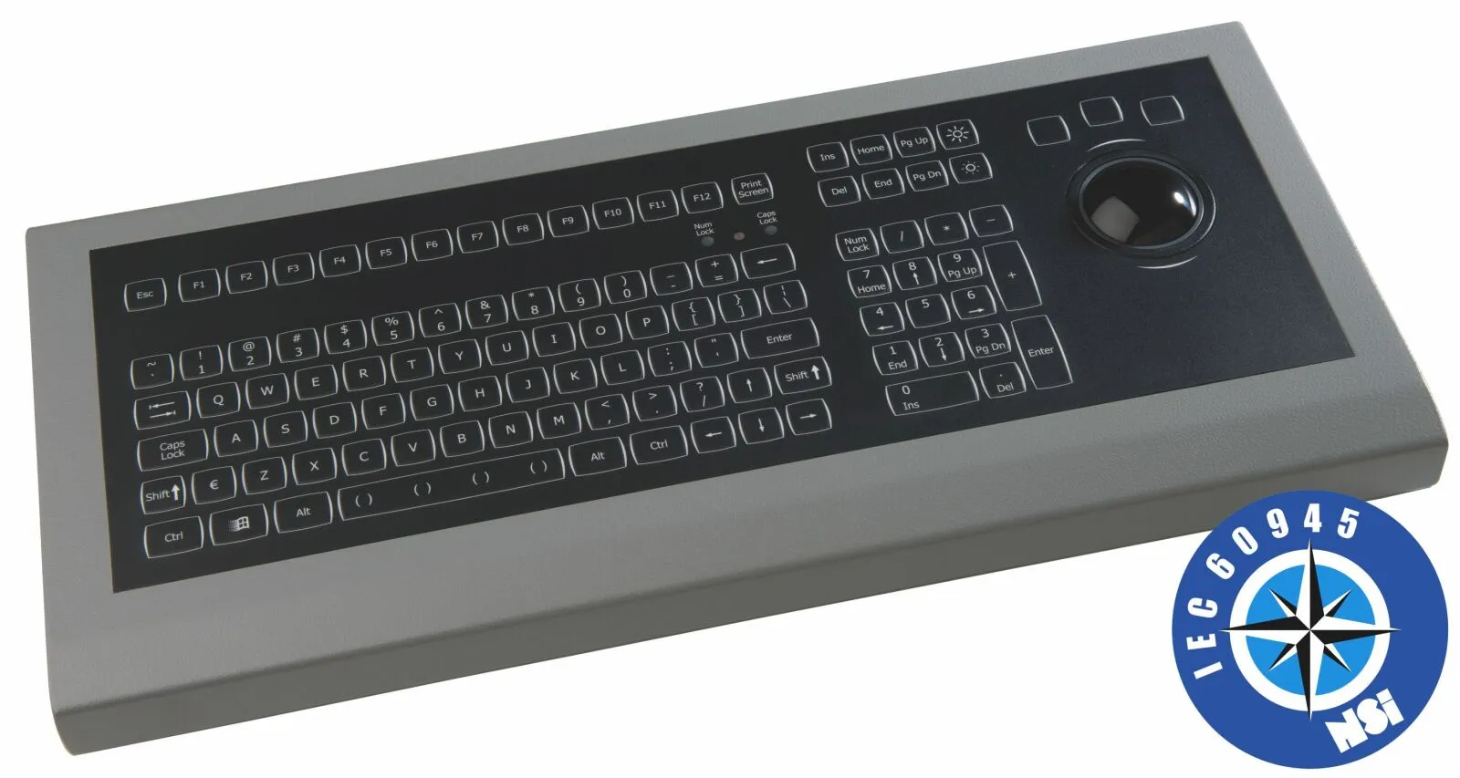 Keyboard, backlite (W), marine, desktop, IP65, 106 short travel key(s), German qwertz, USB interface, IEC60945 certified