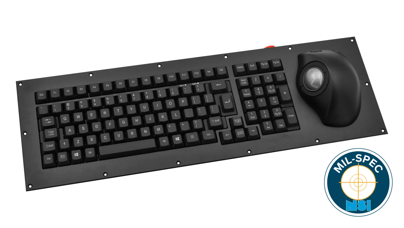 Rugged keyboard, 104-keys, full travel, ergonomic trackball, panel mount, illuminated, Belgium azerty, USB, MIL-STD-810G/461G