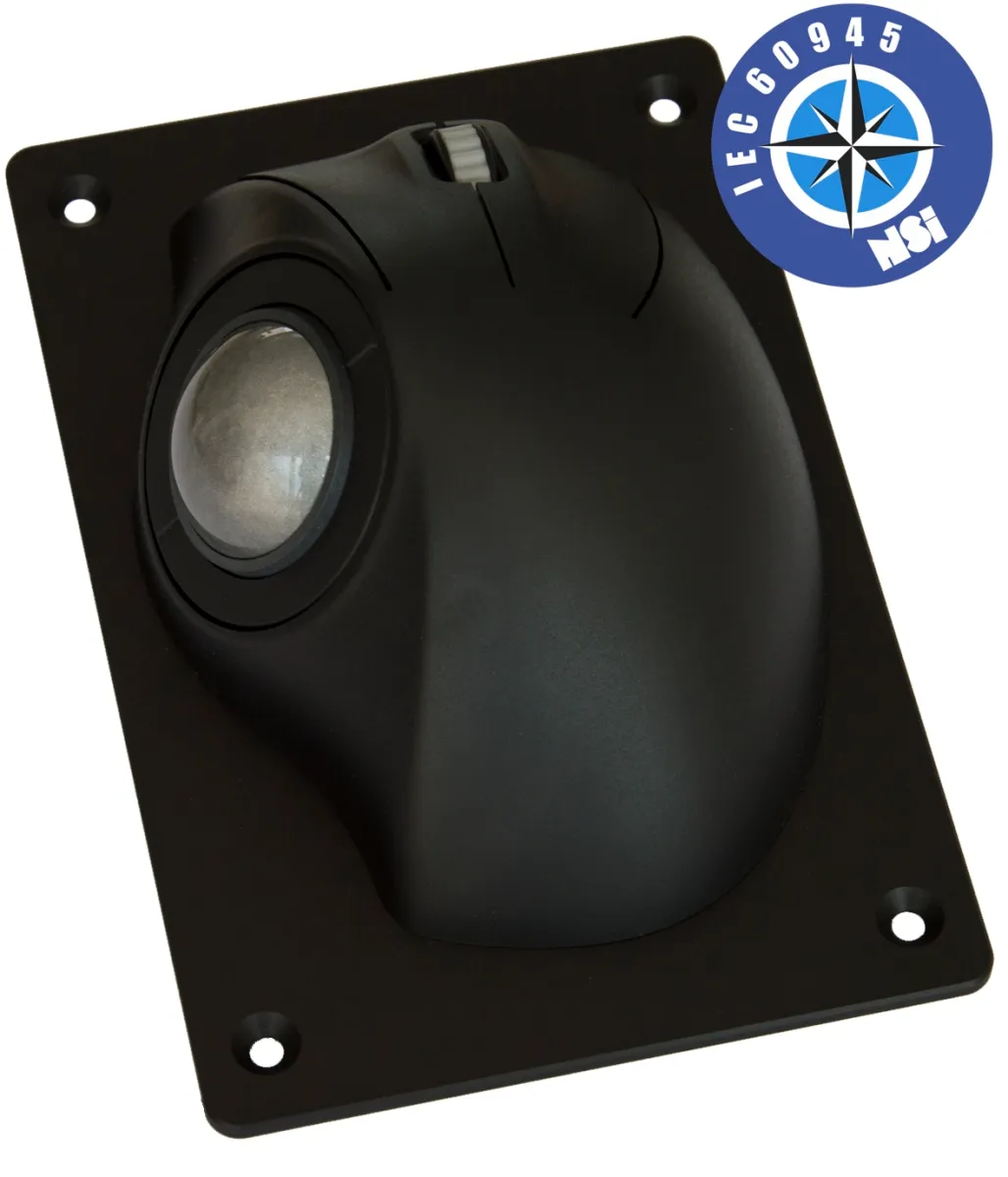 Industrial trackball unit, 38 mm grey metalic ball, black anodised, panel mount with mounting holes, IP68, USB