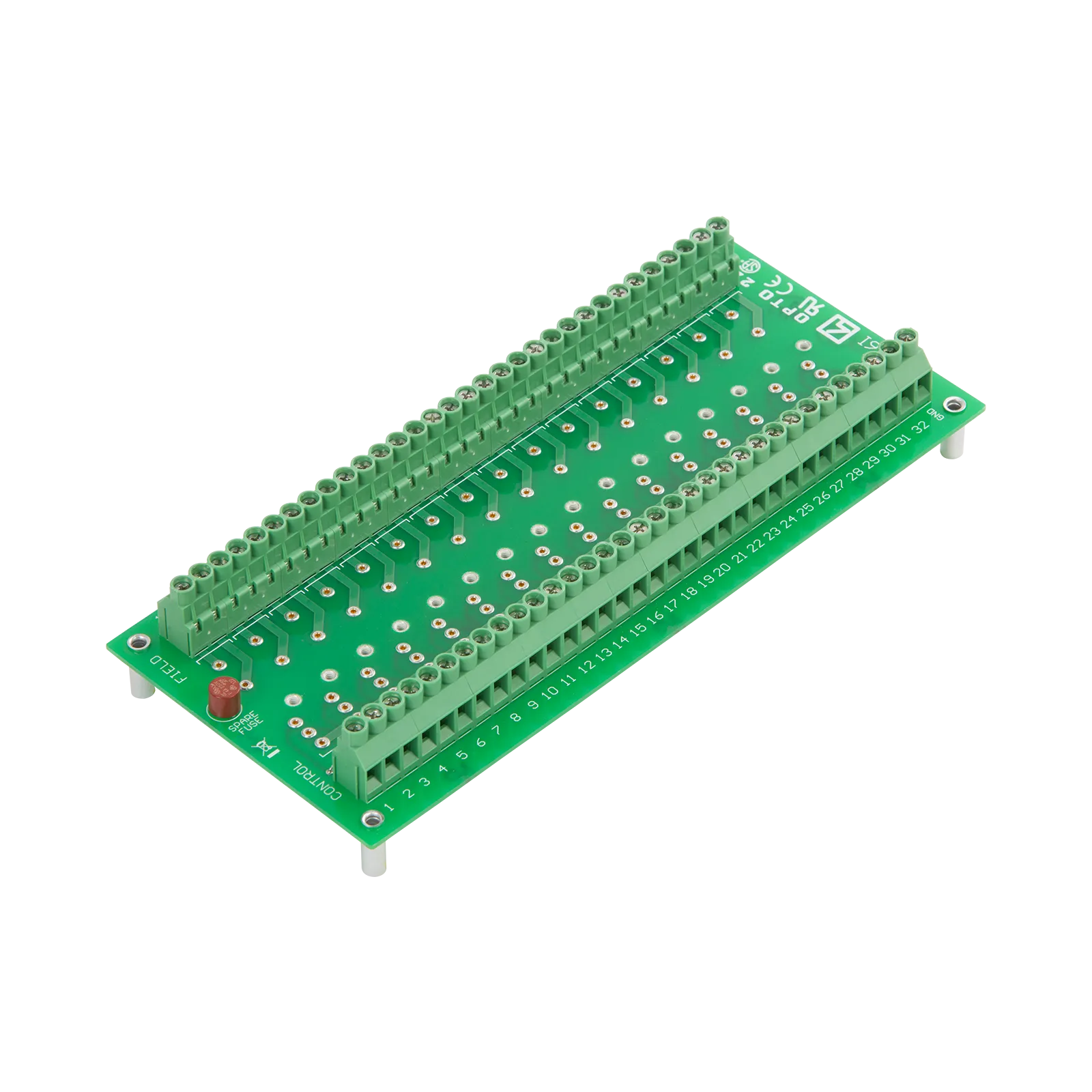 The G4PB16I rack holds 16 G4 digital I/O modules, both AC and DC, and features channel-to-channel isolation between all field and control circuits. Single-channel G4 I/O gives you maximum flexibility. G4 modules are available in 5 VDC, 15 VDC, and 24 VDC logic. On this rack, dry contact outputs and all input modules must have the same logic voltage, but output modules other than dry contact outputs can have mixed logic voltages. Modules are securely attached with a threaded captive hold-down screw. You can insert and remove modules easily and quickly without disturbing field wiring. Output modules (except dry contact output modules) may have their control side wired for either positive-true or standard negative-true control signals. Input modules and dry contact output modules operate only with negative true logic. Barrier strips with screw terminals provide the field, control, and mounting rack power connections. A spare module fuse is included with the rack. For easier wiring, use the G4STRAPB.