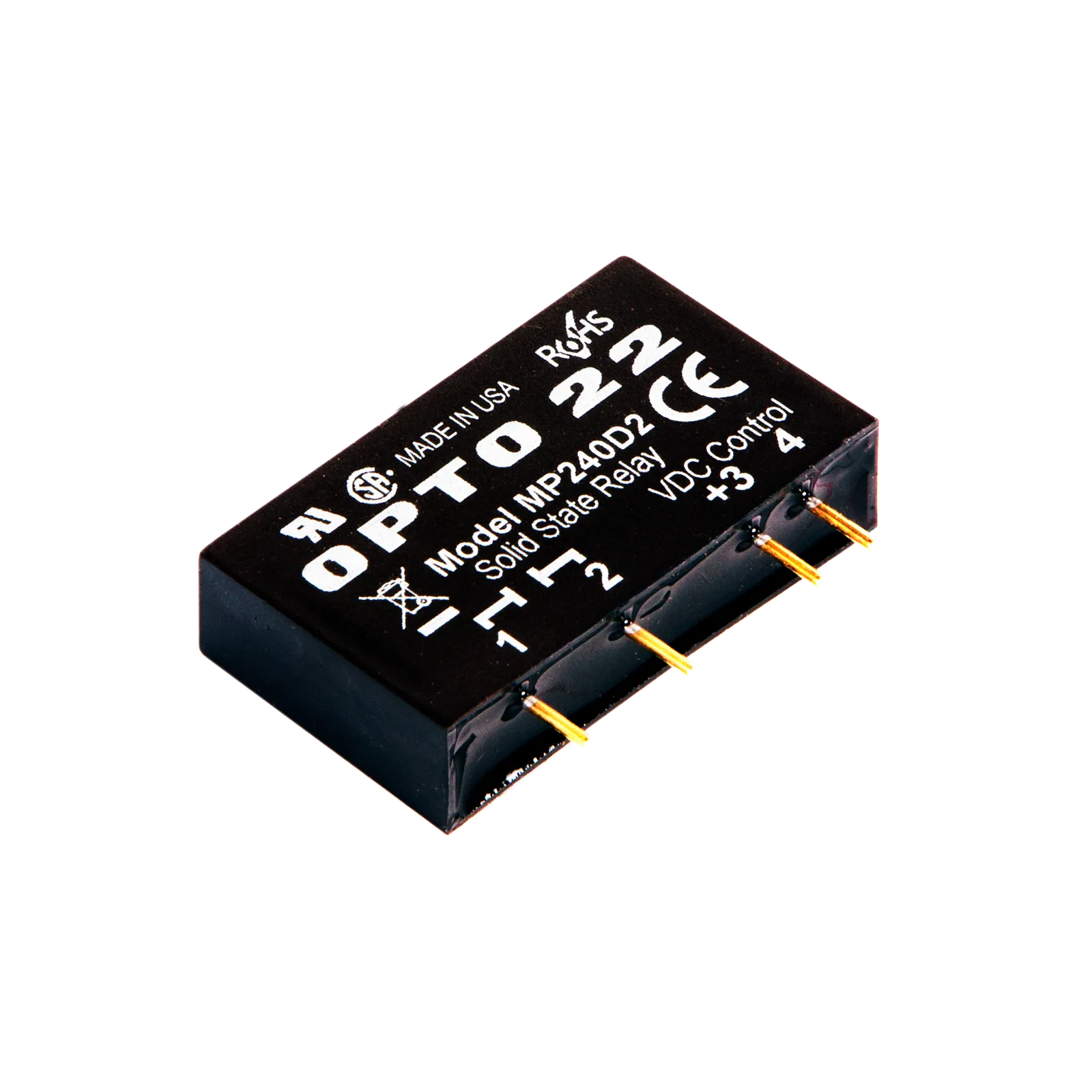 The MP240D2 is a DC-controlled MP Series relay that switches 240 VAC at up to 2 A.